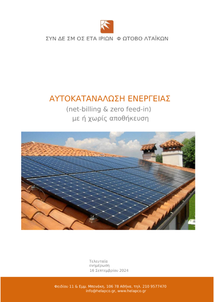 Αυτοκατανάλωση ενέργειας net-billing & zero feed-in με ή χωρίς αποθήκευση